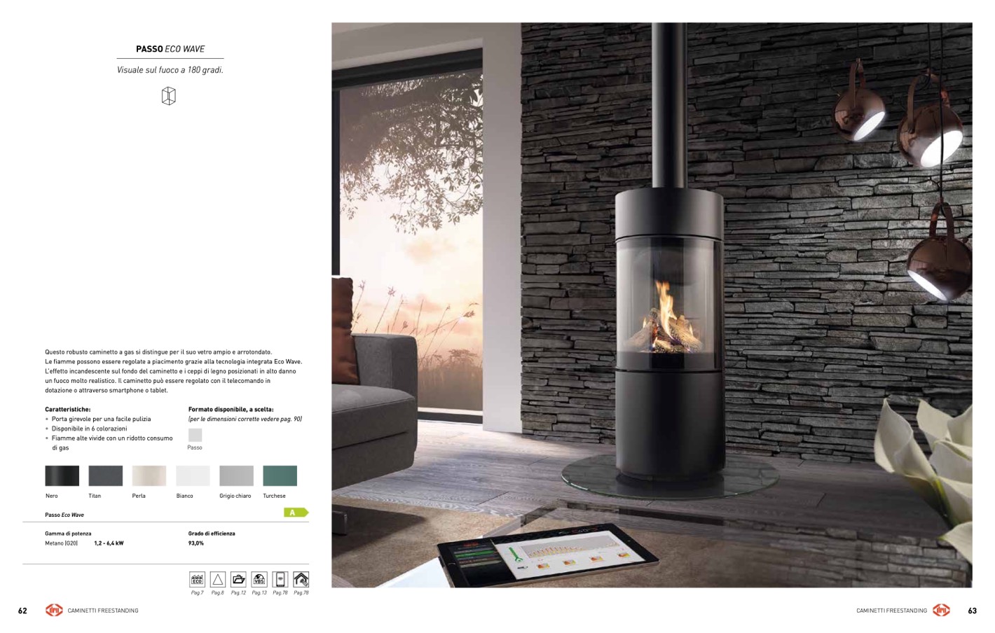 Le fiamme possono essere regolate a piacimento grazie alla tecnologia integrata Eco Wave.