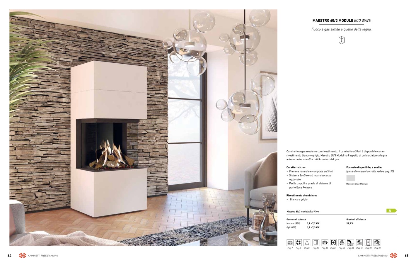 rivestimento bianco o grigio. Maestro 60/3 Modul ha l’aspetto di un bruciatore a legna