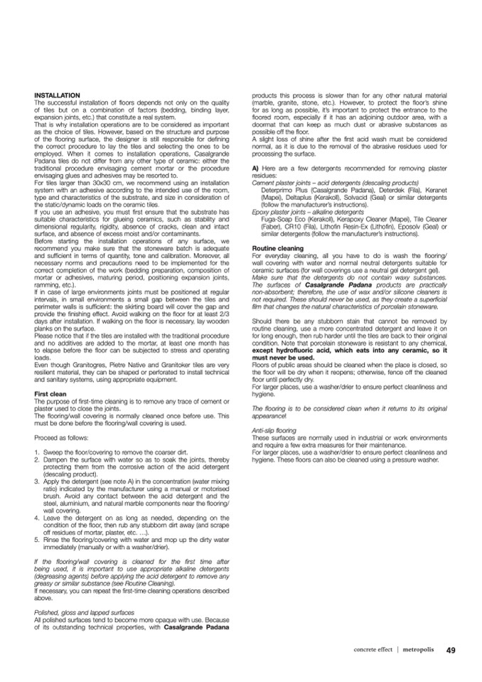 (Mapei), Deltaplus (Kerakoll), Solvacid (Geal) or similar detergents