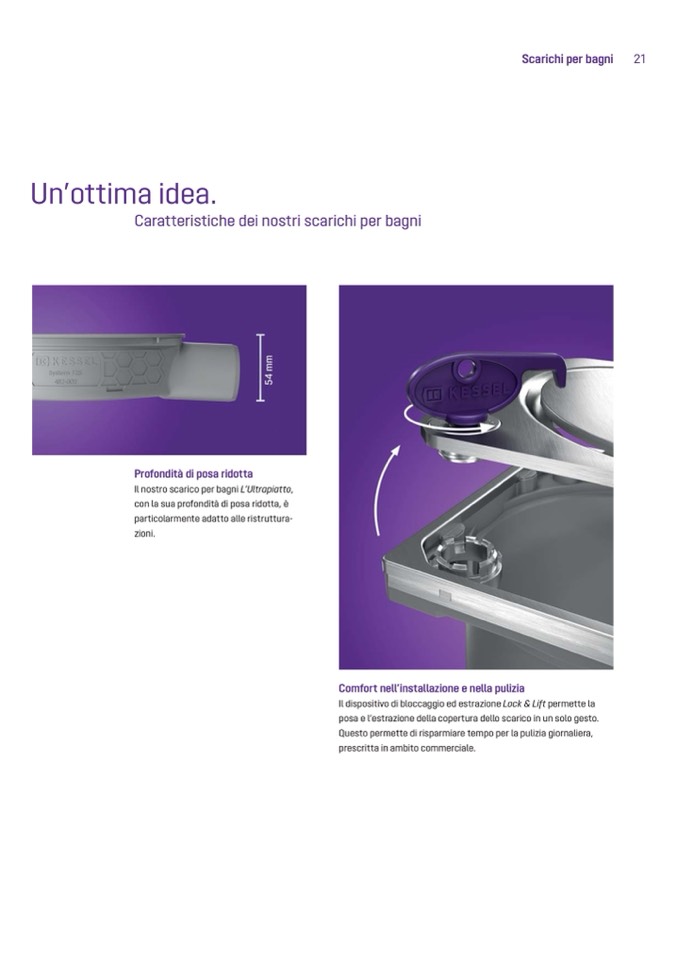 posa e l’estrazione della copertura dello scarico in un solo gesto.