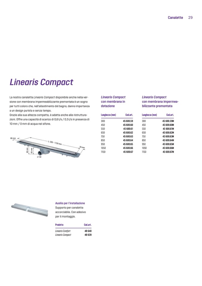La nostra canaletta Linearis Compact disponibile anche nella ver-