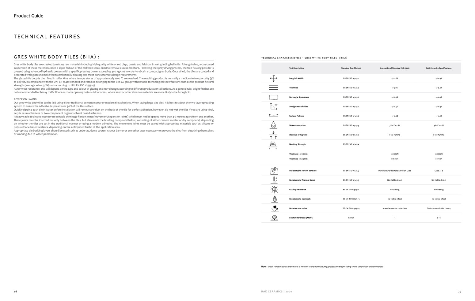 TECHNICAL CHARACTERISTICS - GRES WHITE BODY TILES (BIIA)