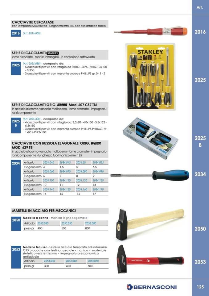 - 4 cacciaviti per viti con intaglio da: 3,0x80 - 4,0x100 - 5,5x125 -
