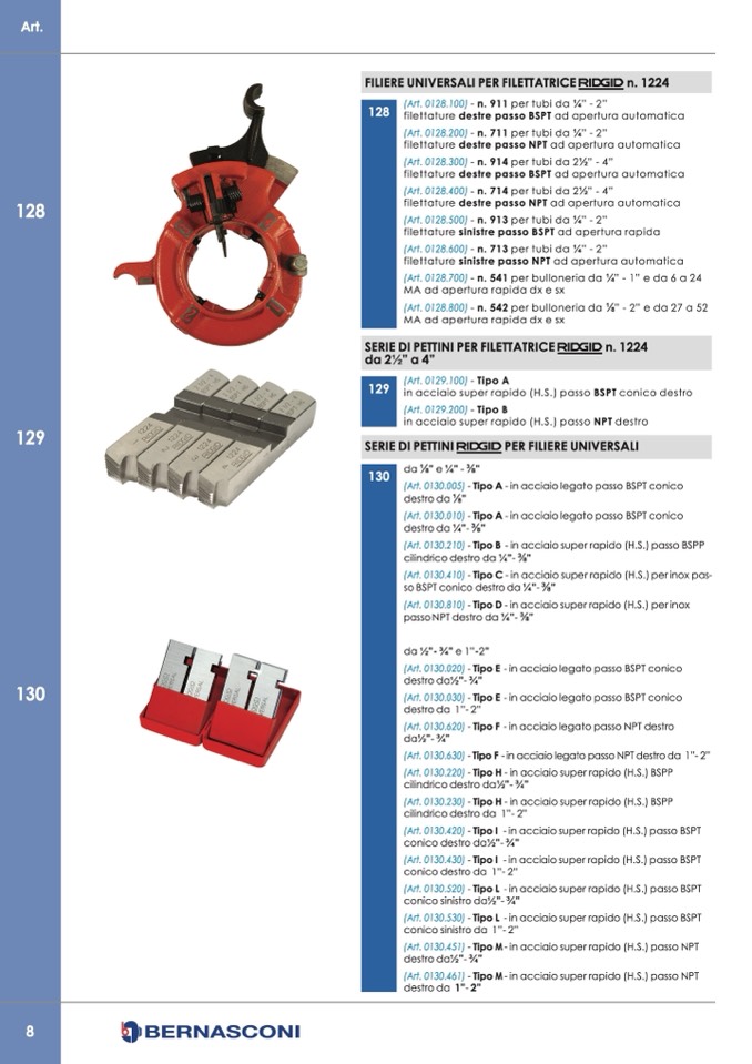 (Art. 0128.200) - n. 711 per tubi da 1⁄4” - 2”
