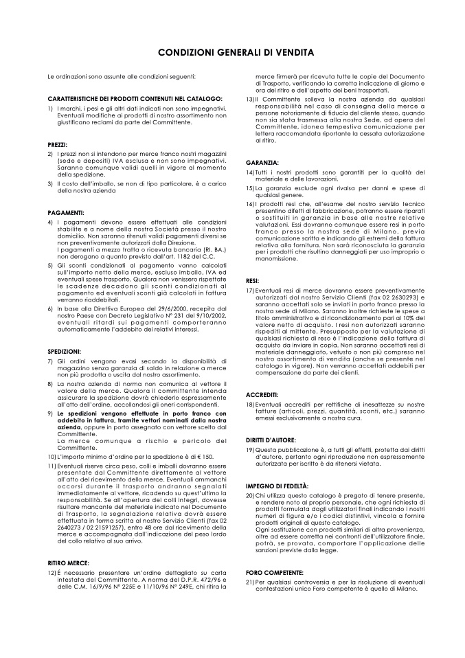 2) I prezzi non si intendono per merce franco nostri magazzini