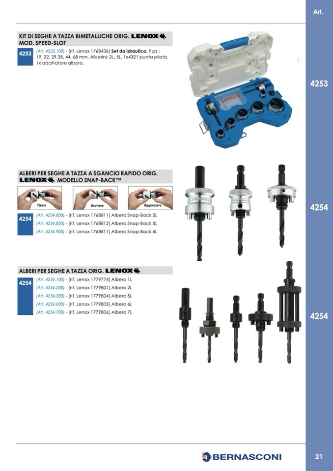 19, 22, 29,38, 44, 68 mm. Alberini: 2L, 5L. 1x4321 punta pilota.