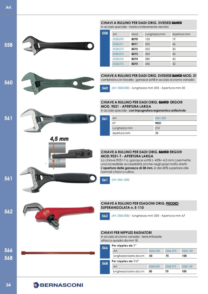 (Art. 0560.000) - lunghezza mm 205 - Apertura mm 30