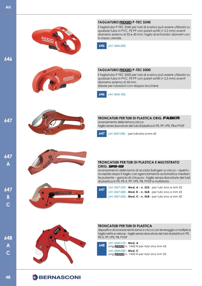 (Art. 0647.568) - Mod. B - n. 568 - per tubi sino a mm 42