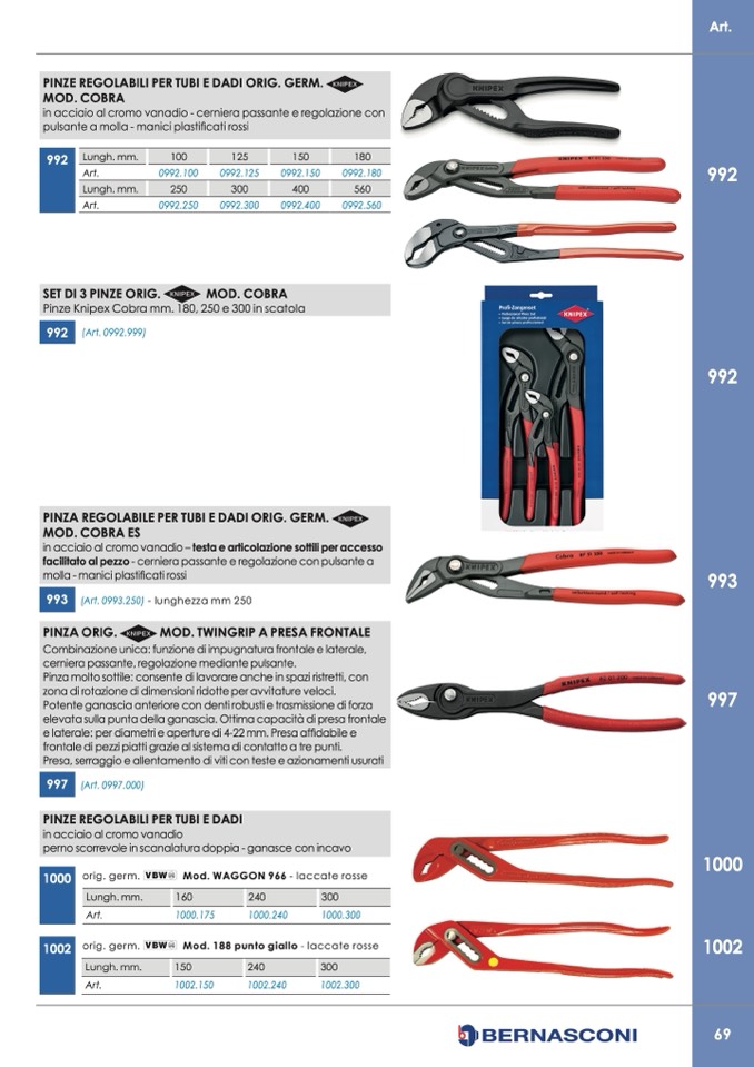 Pinze Knipex Cobra mm. 180, 250 e 300 in scatola