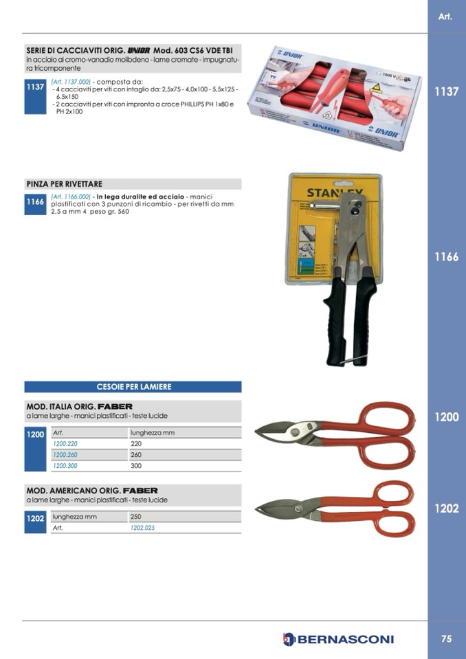 - 4 cacciaviti per viti con intaglio da: 2,5x75 - 4,0x100 - 5,5x125 -