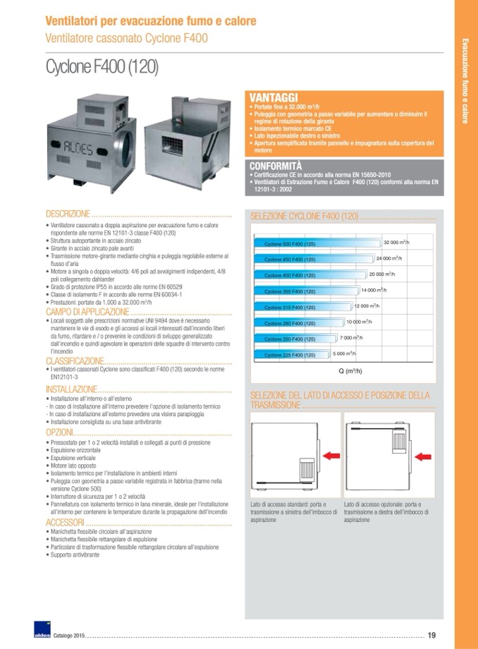 I ventilatori cassonati Cyclone sono classificati F400 (120) secondo le norme