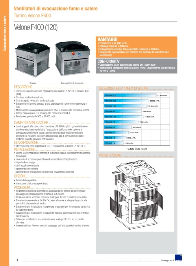 I torrini Velone sono classificati F400 (120) secondo le norme EN 12101-3