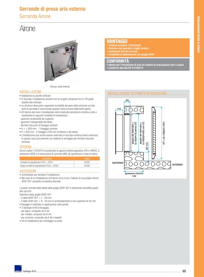 Airone codice 1044370 è comprende lo sgancio elettromagnetico 24V o 48VCC, a