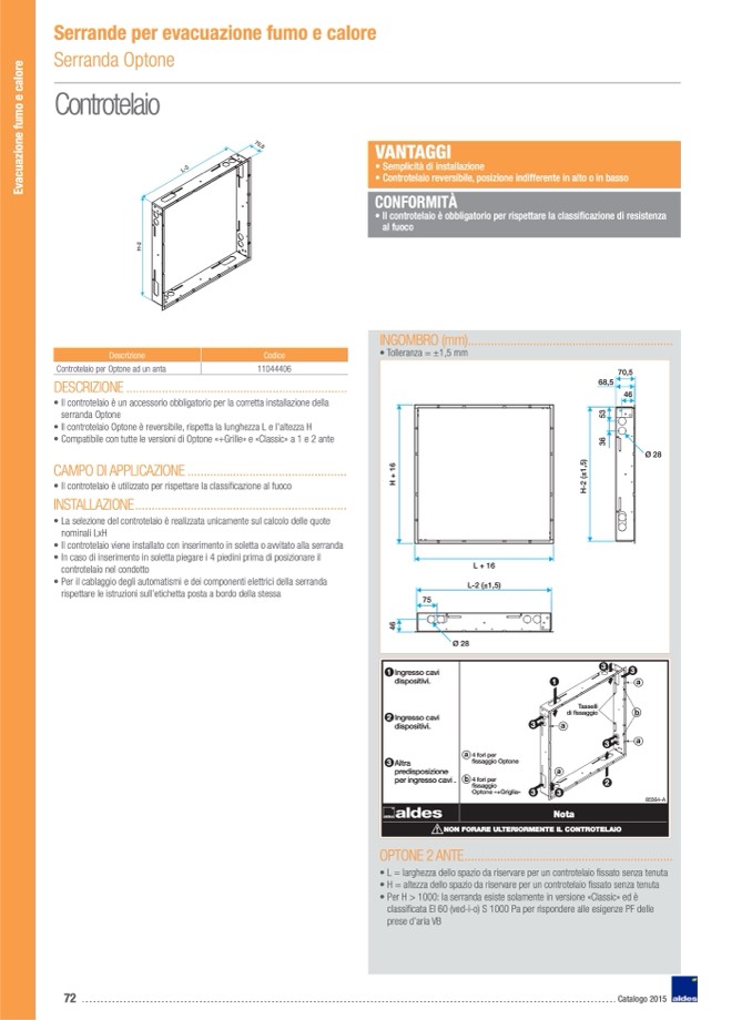 Il controtelaio è utilizzato per rispettare la classificazione al fuoco