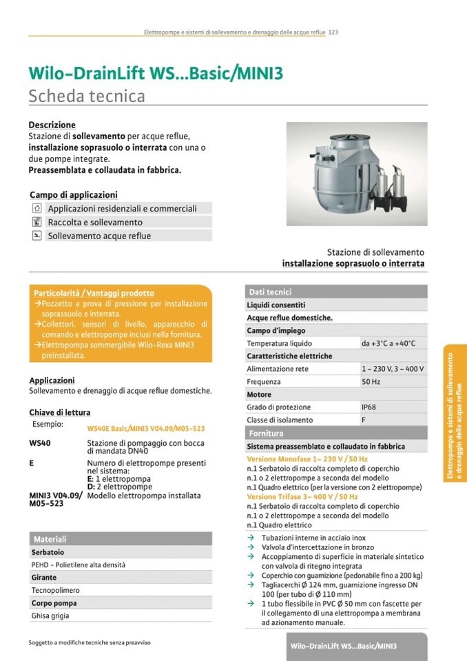 Elettropompe e sistemi di sollevamento e drenaggio delle acque reue 123