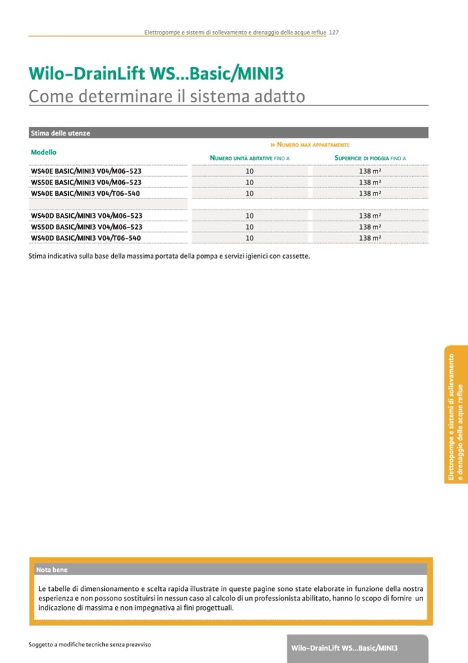 Elettropompe e sistemi di sollevamento e drenaggio delle acque reue 127