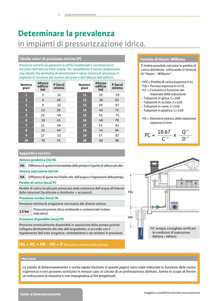 Le tabelle di dimensionamento e scelta rapida illustrate in queste pagine sono state elaborate in funzione della nostra