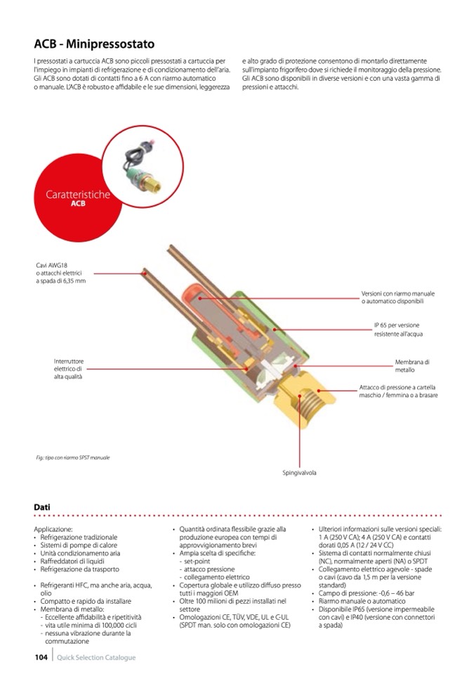 I pressostati a cartuccia ACB sono piccoli pressostati a cartuccia per