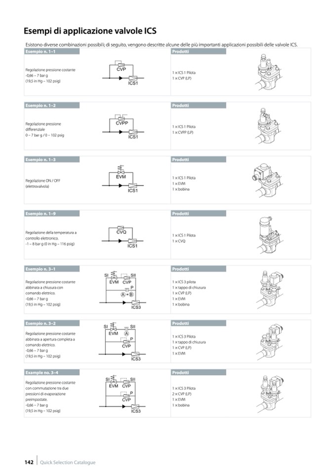 Esistono diverse combinazioni possibili; di seguito, vengono descritte alcune delle più importanti applicazioni possibili delle valvole ICS.