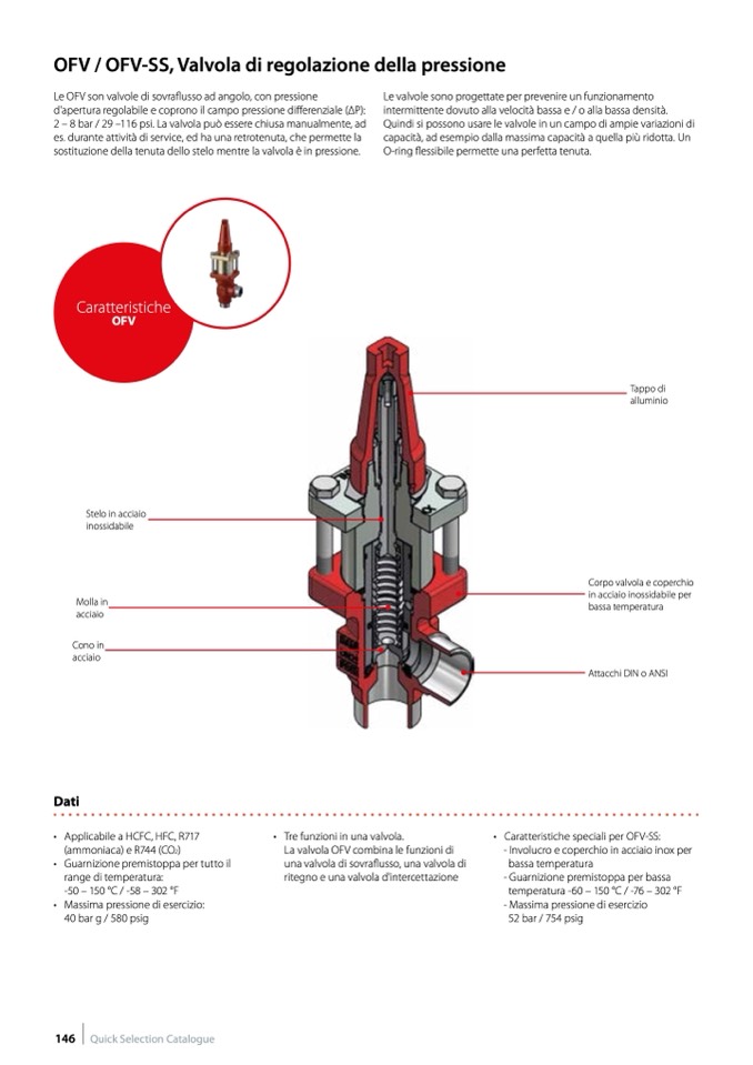 Le OFV son valvole di sovraflusso ad angolo, con pressione