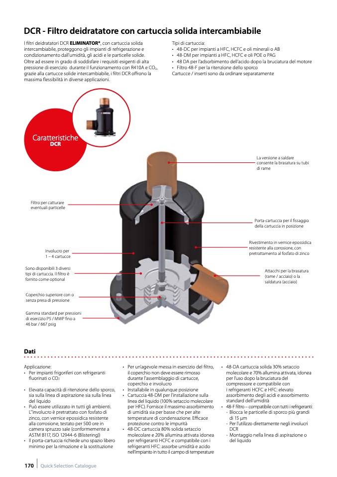 I filtri deidratatori DCR ELIMINATOR®, con cartuccia solida