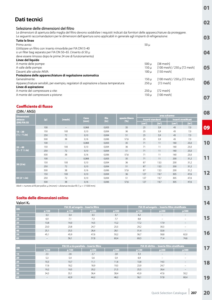Le dimensioni di apertura della maglia del filtro devono soddisfare i requisiti indicati dai fornitori delle apparecchiature da proteggere.
