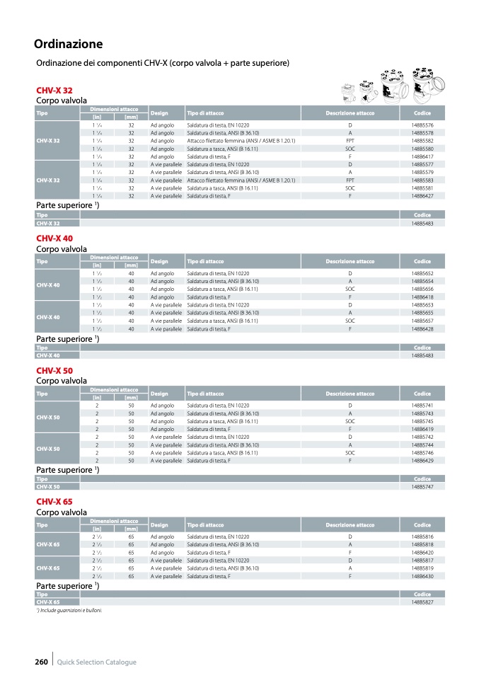 ) Include guarnizioni e bulloni.
