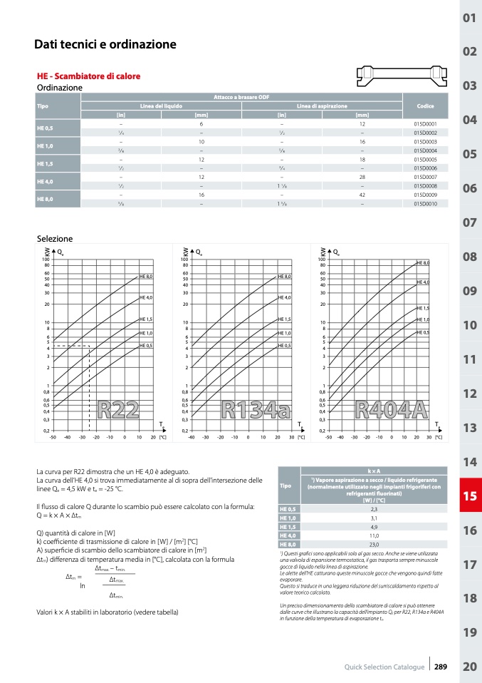 per R22, R134a e R404A