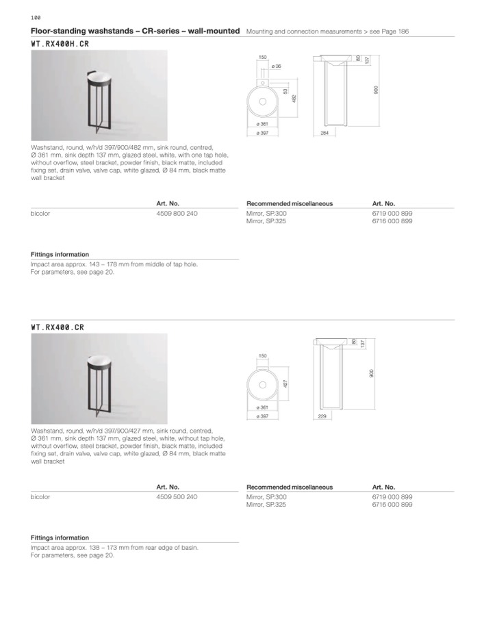 Floor-standing washstands – CR-series – wall-mounted