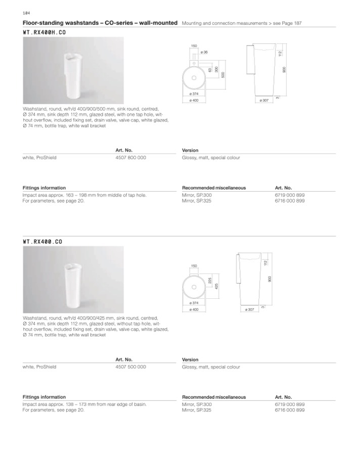 Washstand, round, w/h/d 400/900/425 mm, sink round, centred,