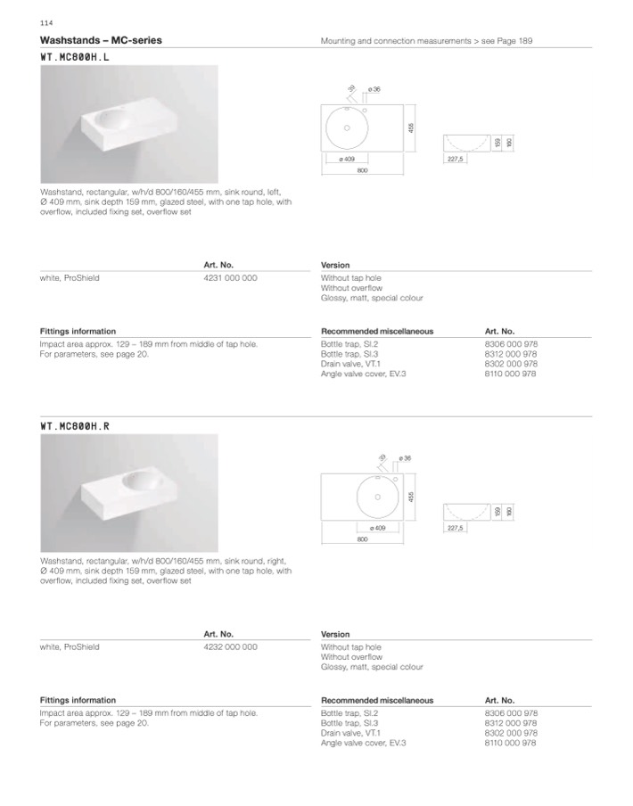 Washstand, rectangular, w/h/d 800/160/455 mm, sink round, left,