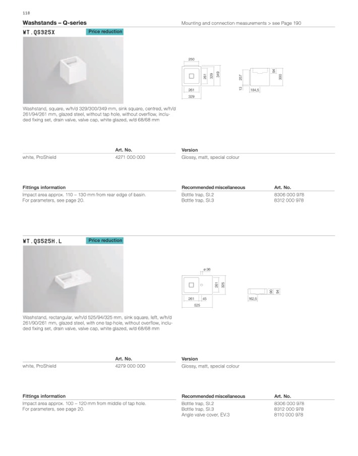 Washstand, square, w/h/d 329/300/349 mm, sink square, centred, w/h/d