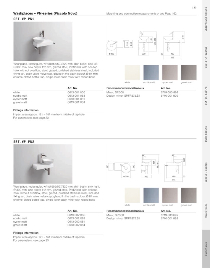 Washplace, rectangular, w/h/d 555/597/320 mm, dish basin, sink right,