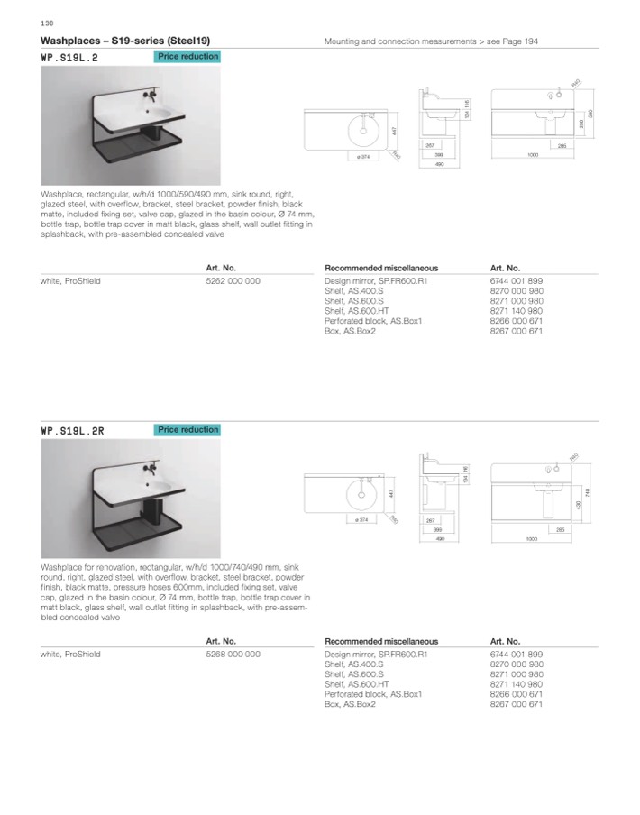 Washplaces – S19-series (Steel19)