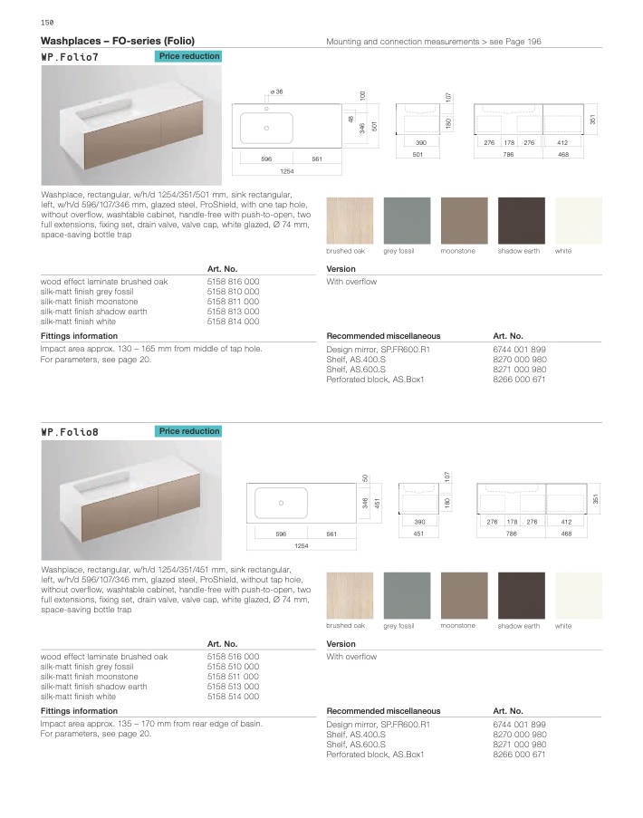 without overflow, washtable cabinet, handle-free with push-to-open, two