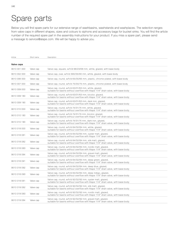 number of the required spare part in the assembly instructions for your product. If you miss a spare part, please send