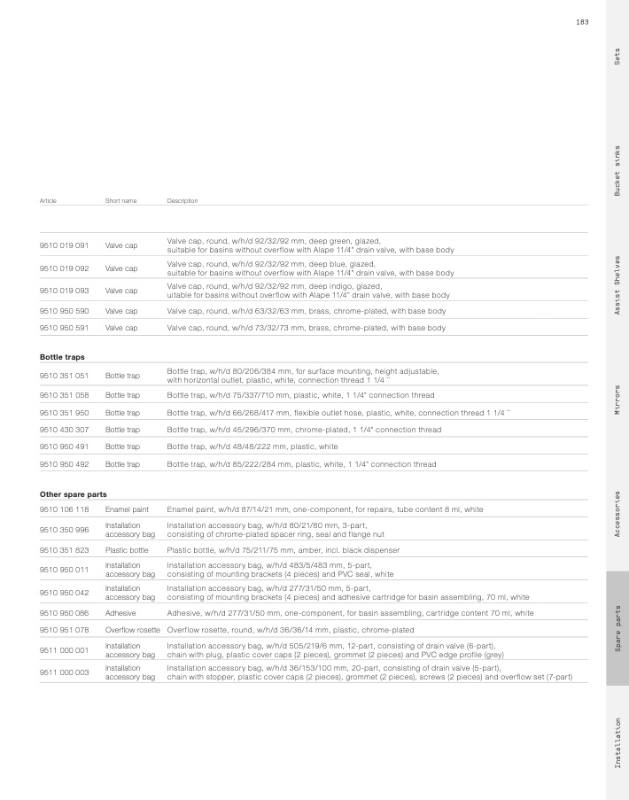 uitable for basins without overflow with Alape 11/4” drain valve, with base body