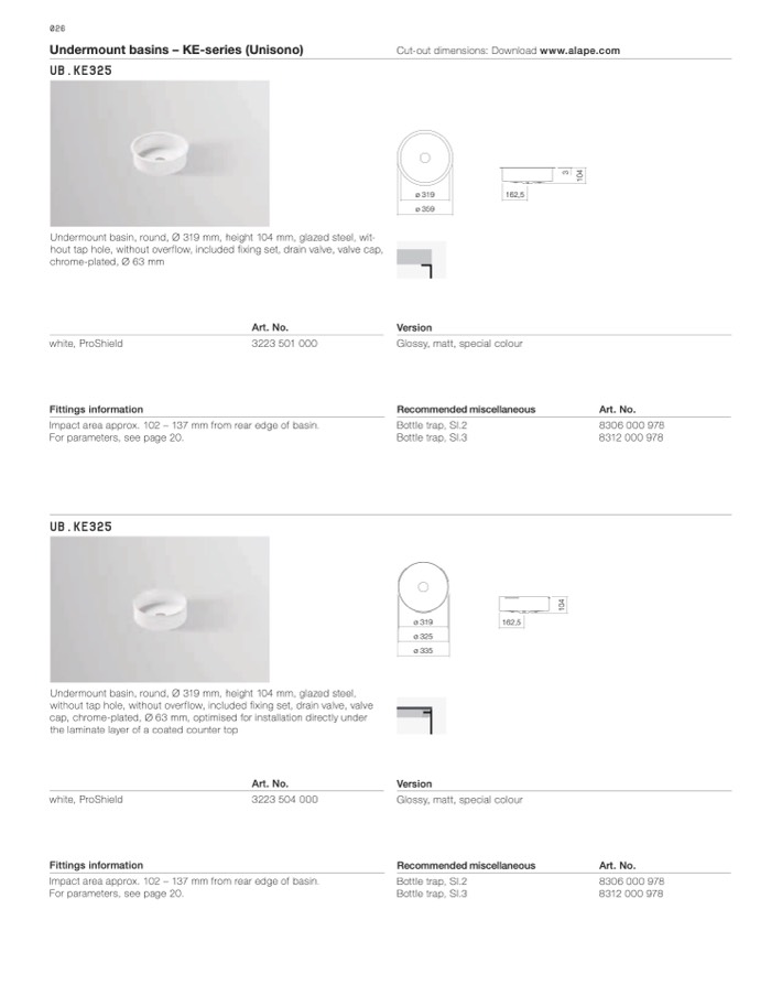 Undermount basin, round, Ø 319 mm, height 104 mm, glazed steel, wit-