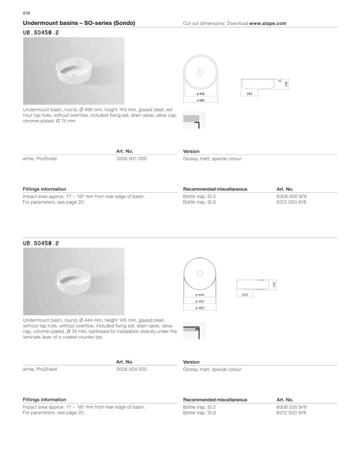 Undermount basin, round, Ø 456 mm, height 145 mm, glazed steel, wit-