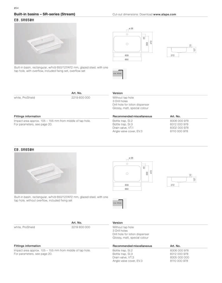Built-in basins – SR-series (Stream)