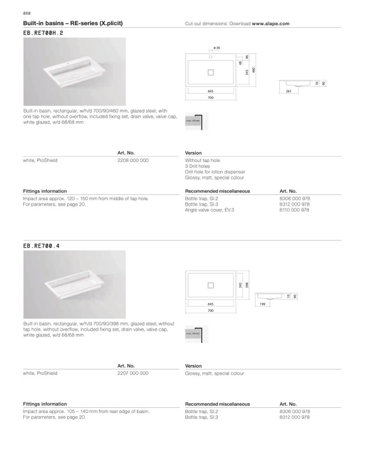 Cut-out dimensions: Download www.alape.com