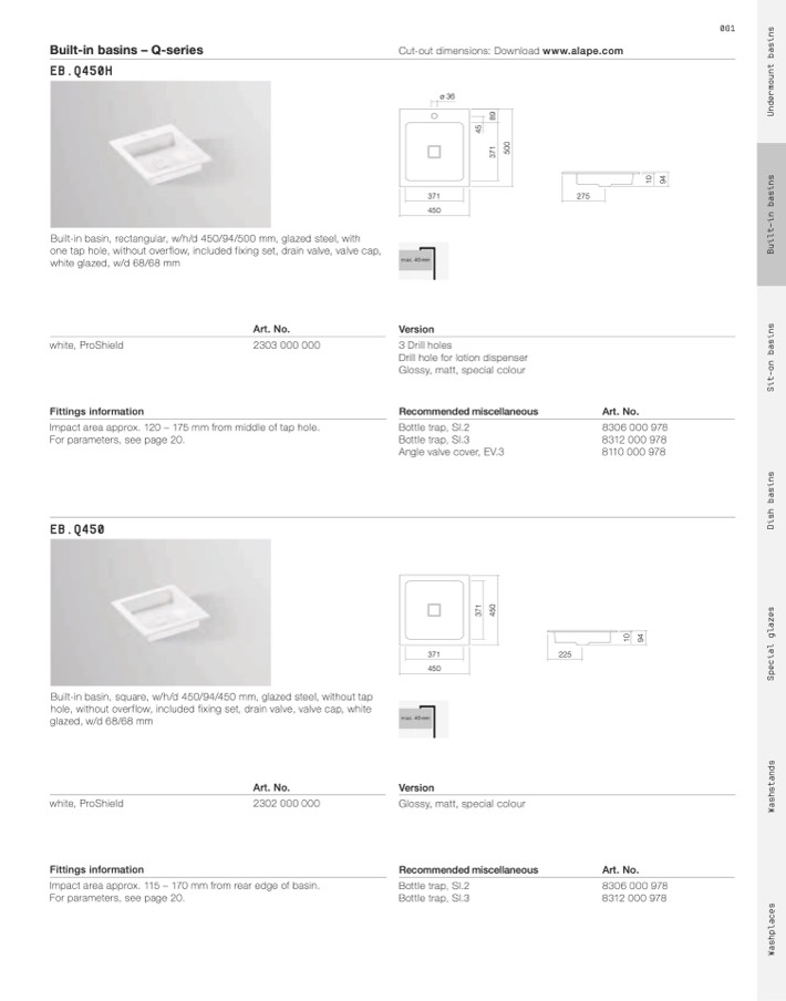 Built-in basins – Q-series