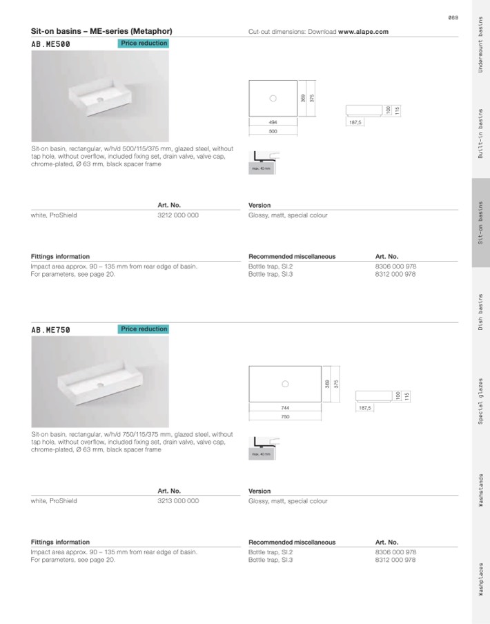 Sit-on basins – ME-series (Metaphor)