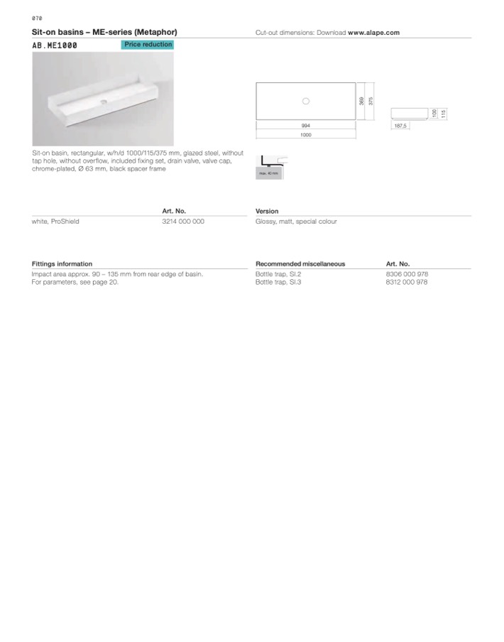 Cut-out dimensions: Download www.alape.com
