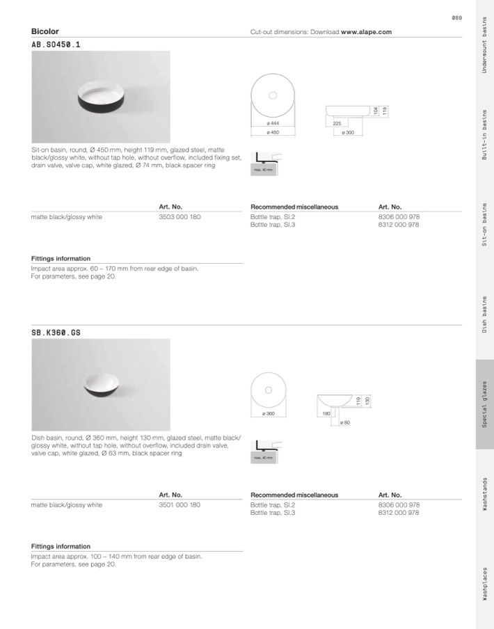 Cut-out dimensions: Download www.alape.com