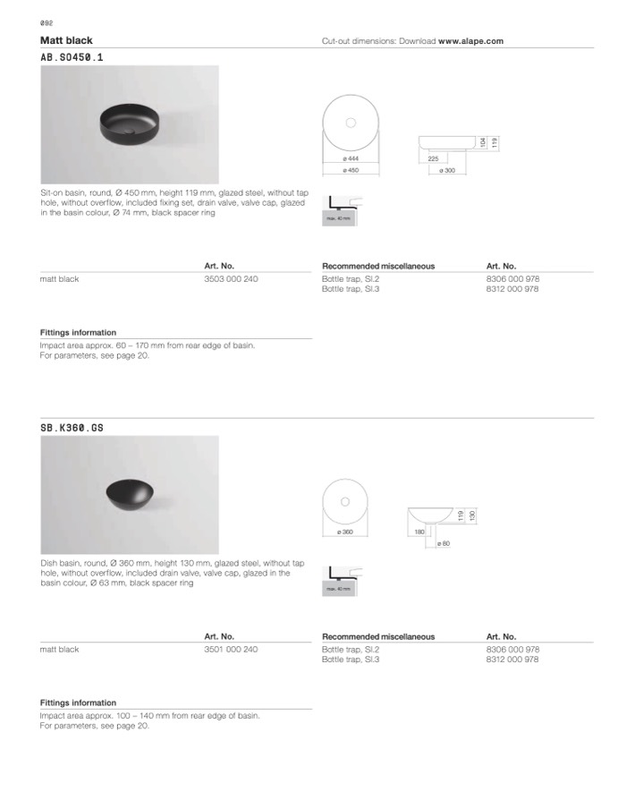 Cut-out dimensions: Download www.alape.com