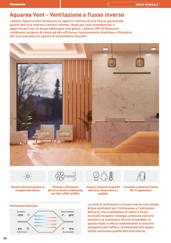 I sistemi Aquarea Vent forniscono un apporto continuo di aria fresca, garantend