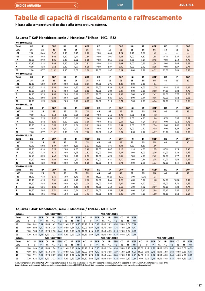 Questi dati sono stati misurati da Panasonic in conformità alla norma EN 14511-2. Questi dati sono solo a scopo di riferimento e non garantiscono le prestazioni