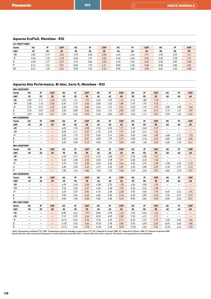 Questi dati sono stati misurati da Panasonic in conformità alla norma EN 14511-2. Questi dati sono solo a scopo di riferimento e non garantiscono le prestazioni.