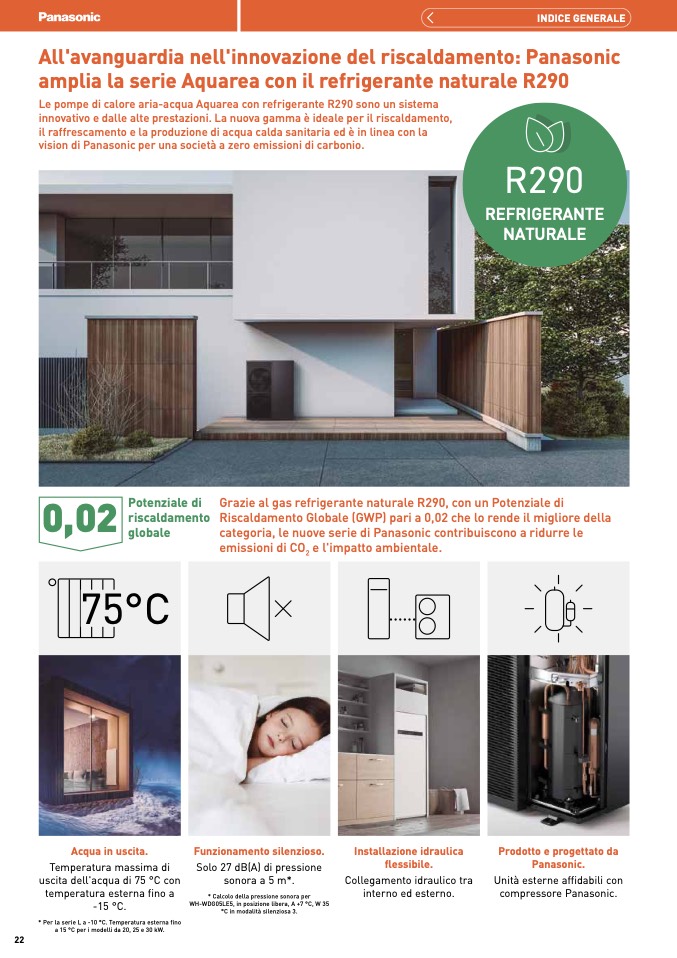 Le pompe di calore aria-acqua Aquarea con refrigerante R290 sono un sistem